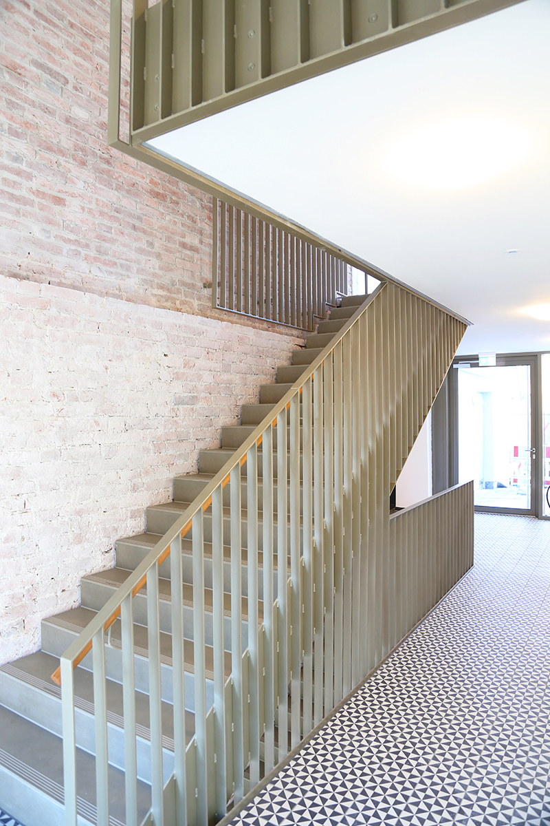 In den beiden Wohngebäuden entstanden insgesamt 18 Wohneinheiten bestehend aus 1–5 Zimmer-Wohnungen. Diese orientieren sich mit ihren Loggien und Terrassen zum privaten Innenhof.