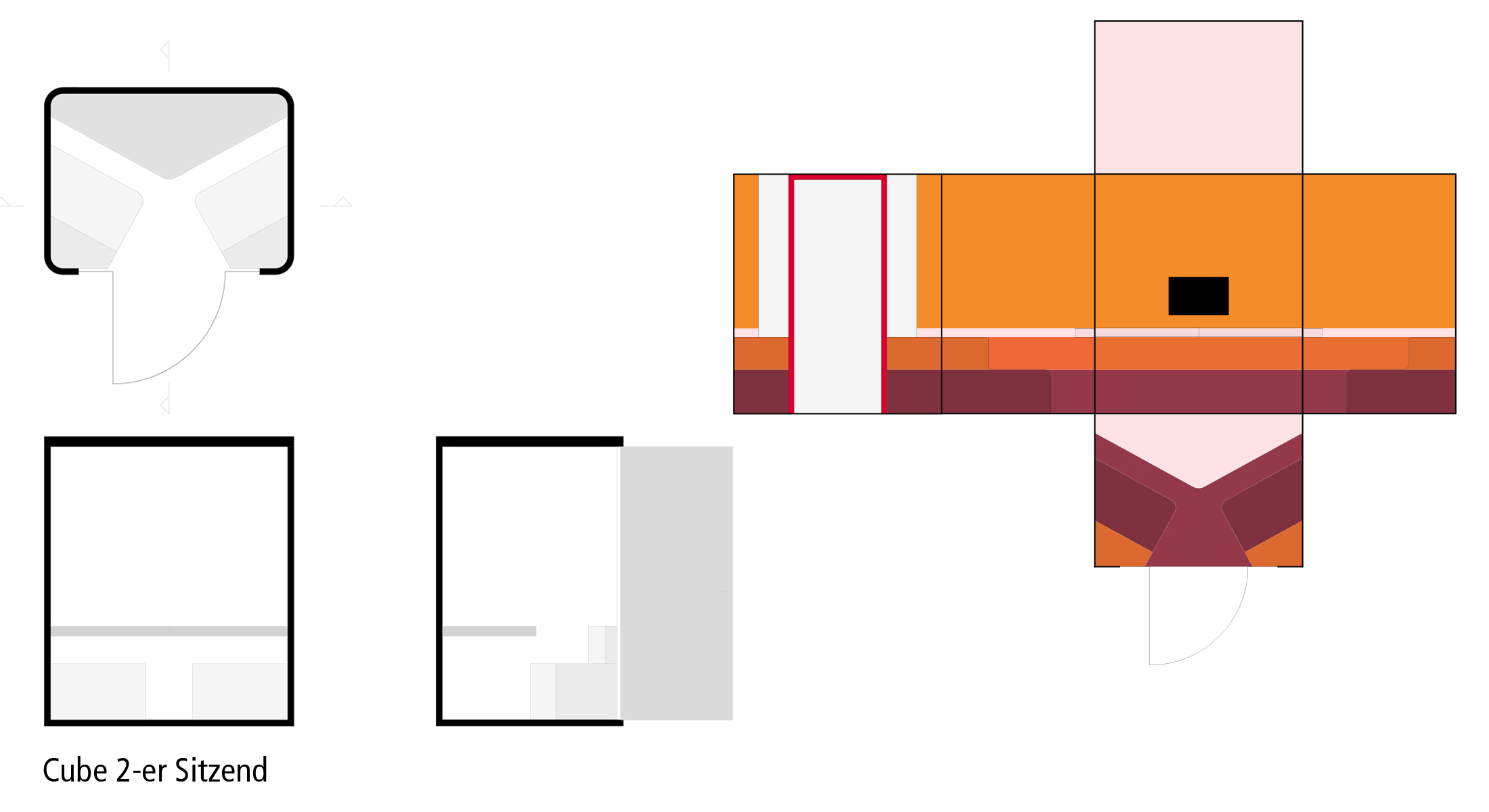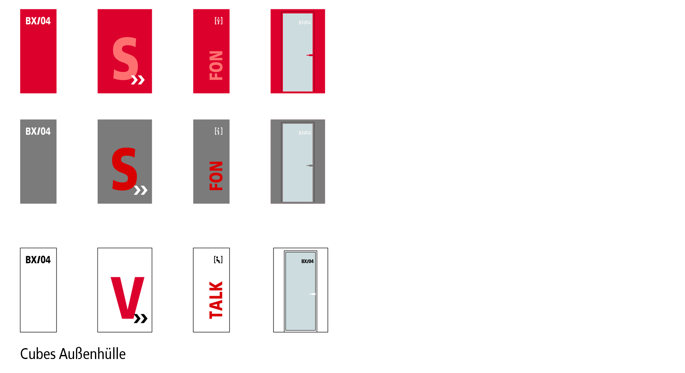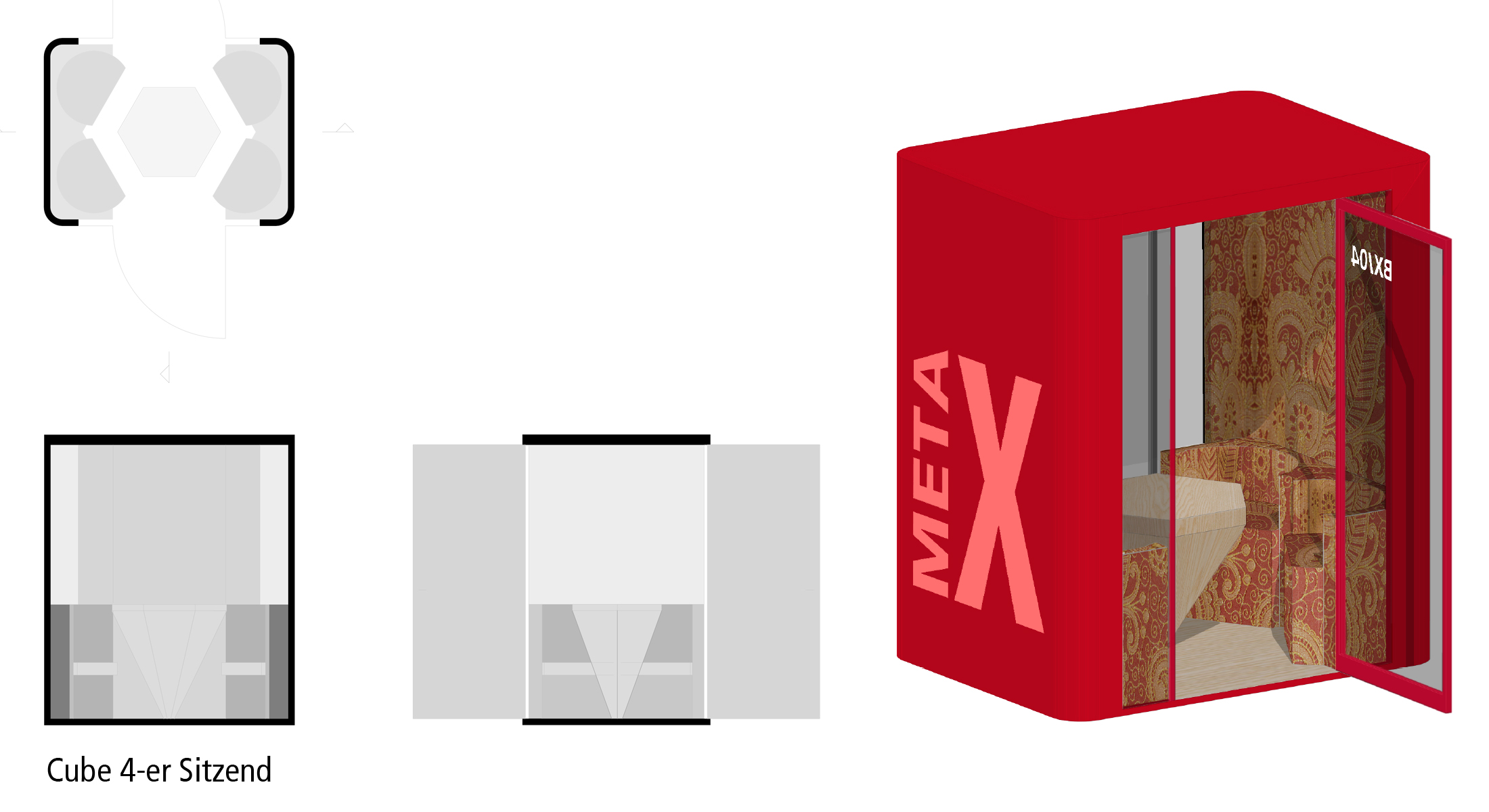 Schallisolierte Kapseln verschiedener Größen werden in die offenen Arbeitsräume eingefügt, um konzentriertes Arbeiten zu ermöglichen. Ausgehend von einem freistehenden, modularen System können die Rückzugsboxen für eine bis maximal vier Personen sein. Die Außenseite der Kapseln ist einfarbig lackiert mit großformatiger Beschriftung; dabei kommt ein Dreiklang von Farben zum Einsatz. Ihr Inneres ist individuell ausgekleidet. Die Boxen garantieren höchste Vertraulichkeit.