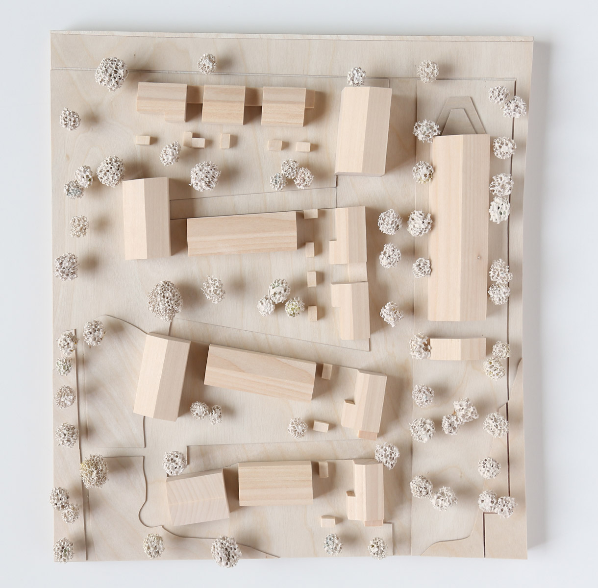Das kompakte Baufeld wird im Osten vom Anger und im Westen von einer großzügigen Grünfläche gerahmt, die gleichzeitig den neuen Ortsrand bildet. Die Bebauung ist im Wesentlichen in drei Gartenhöfe gegliedert, Die Hausgruppen werden durch eine Mischung aus Doppelhäusern, Reihenhäusern und Mehrfamilienhäusern gebildet und jeweils von Norden über Wohnwege und Osten von der Erschließungsstraße erschlossen. Nach Westen hin verzahnen sich die Gartenhöfe mit den öffentlichen Grünflächen.